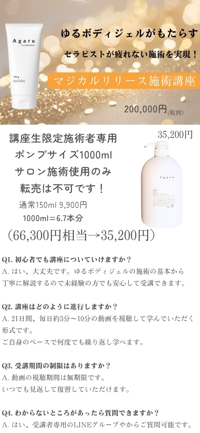 HOME > マジカルリリース施術講座 お申し込みはこちらから 塗り方で、結果に大きな違いが生まれます。施術者の負担を軽減しながら お客様の満足度を最大化するサポートジェル お申し込みはこちらから 更新日:2025年6月27日 author